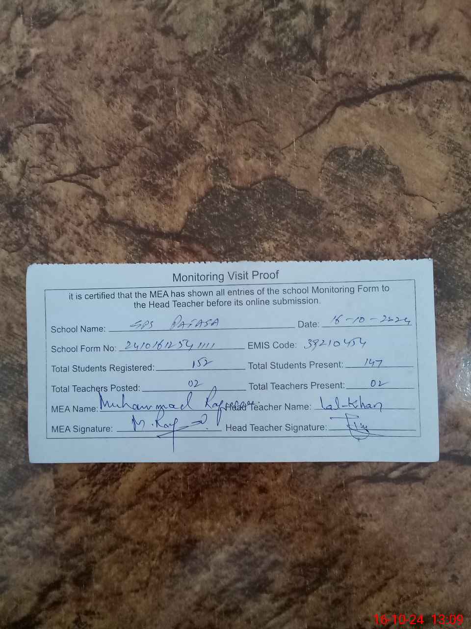| EMIS Code: 39210454 | Name of School: GPS PATASA P/O DHUPAI | |||