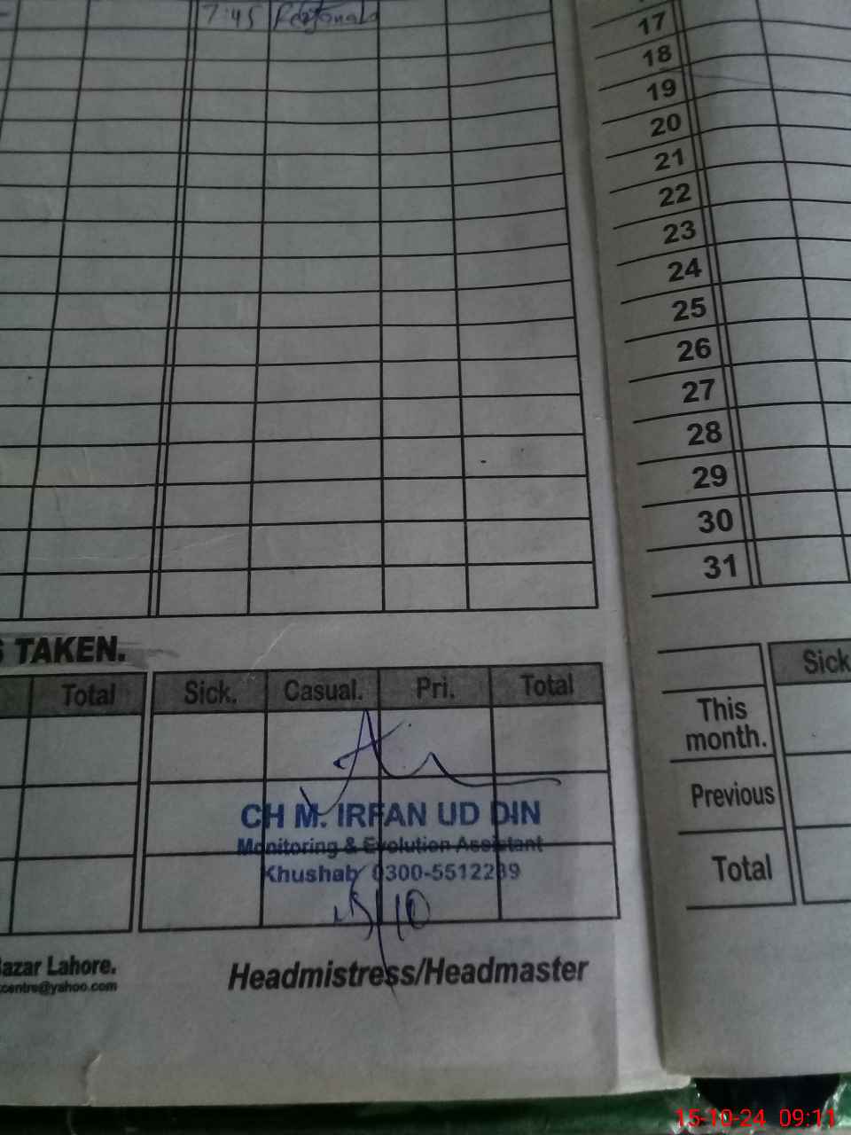 | Name: Um**** Az**** Designation: (School Headmaster's/Headmistress's) PST Phone/Cell Number: 03**** |