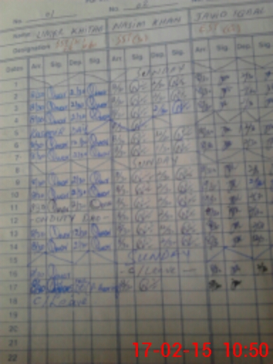 | CNIC | Full Name | Designation | R/C | Absence During Last Calender Month |