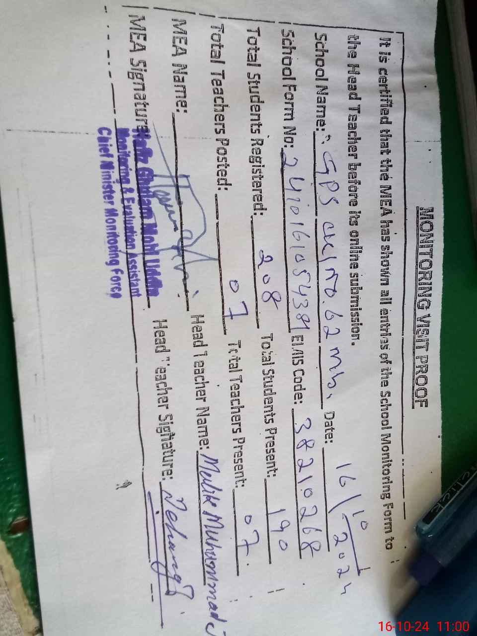 | Name: GH**** SH**** Designation: (School Headmaster's/Headmistress's) PST Phone/Cell Number: 03**** |