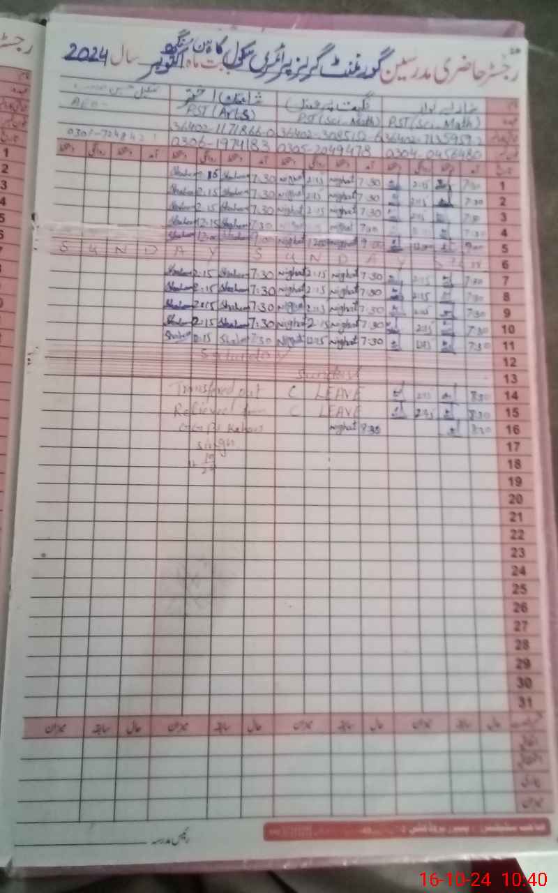 | Name: SH**** NA**** Designation: (School Headmaster's/Headmistress's) PST Phone/Cell Number: 03**** |