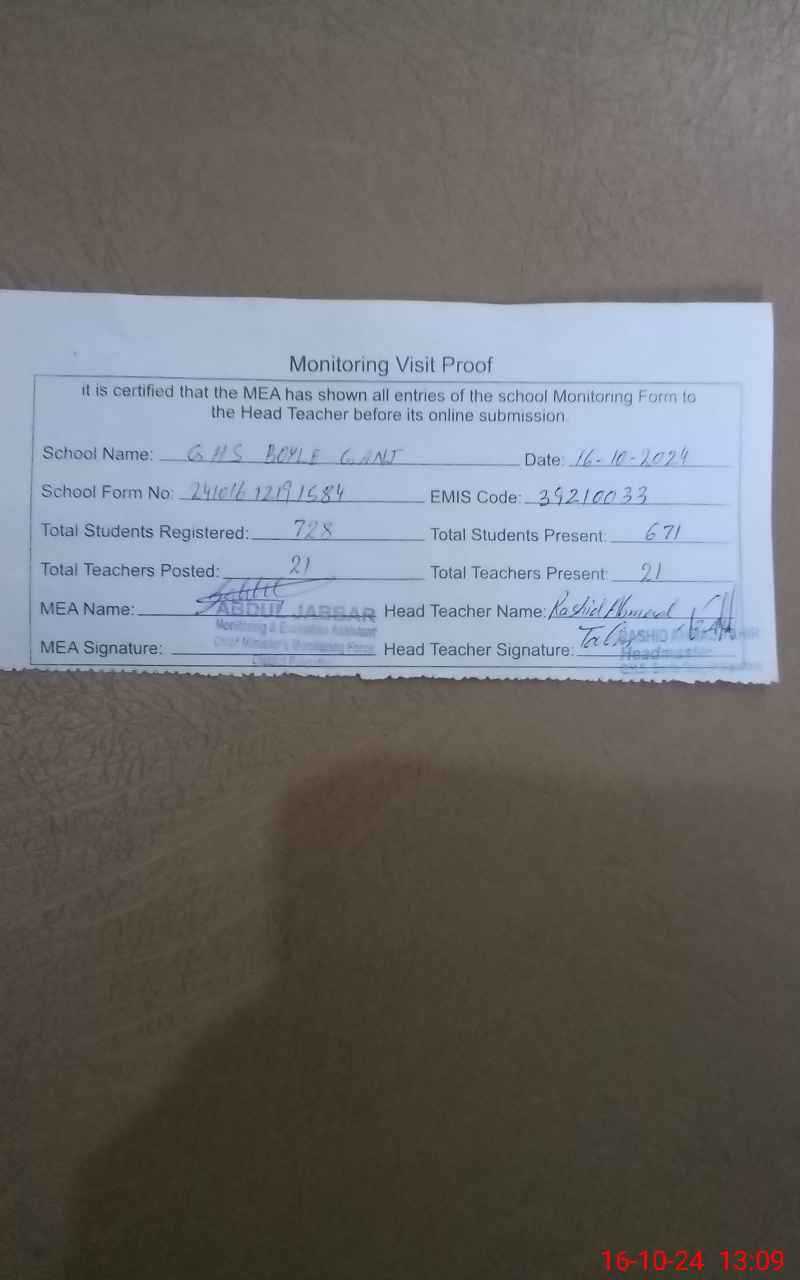 | EMIS Code: 39210033 | Name of School: GHS BOYLE GANJ | |||