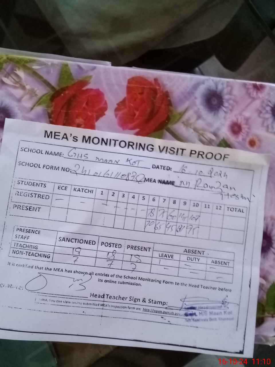 | EMIS Code: 36410027 | Name of School: GHSS MAAN KOT, NAWAN SHEHR | |||