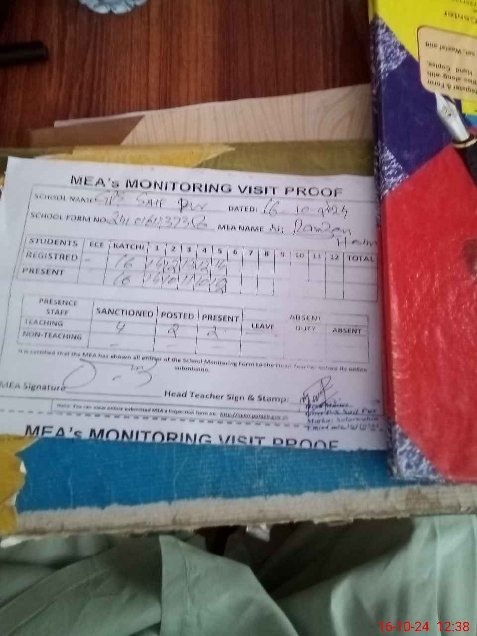 | EMIS Code: 36410584 | Name of School: GPS SAIF PUR, P/O MAAN KOT, NAWAN SHEHR | |||