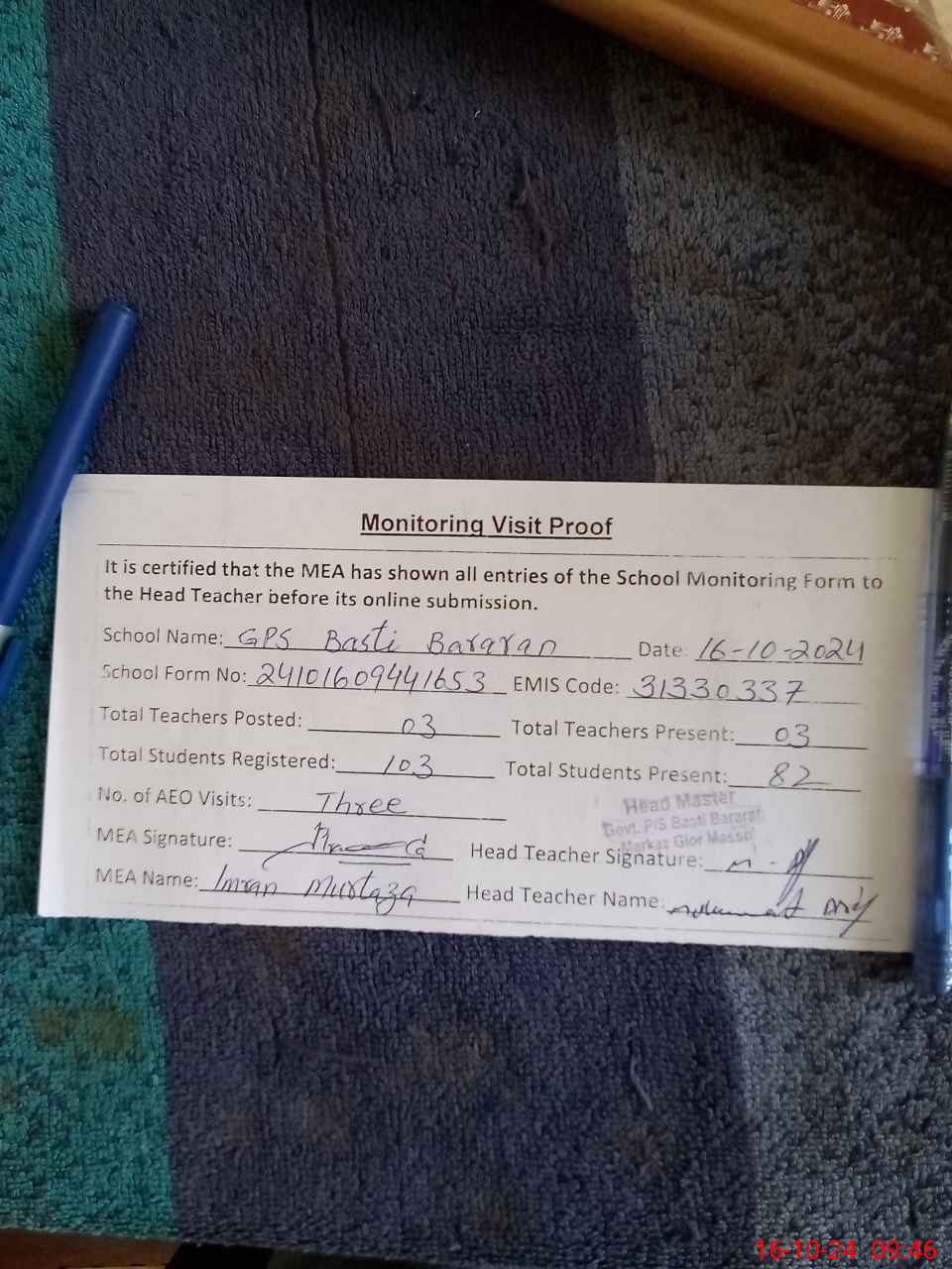 | EMIS Code: 31330337 | Name of School: GPS BASTI BARARAN | |||