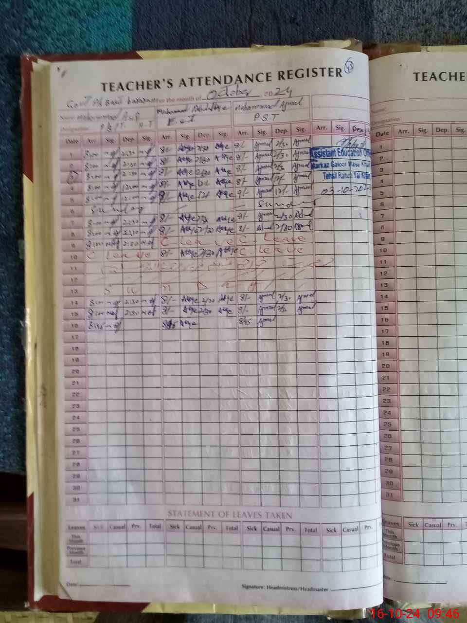 | Name: Mu**** As**** Designation: (School Headmaster's/Headmistress's) P S T Phone/Cell Number: 03**** |