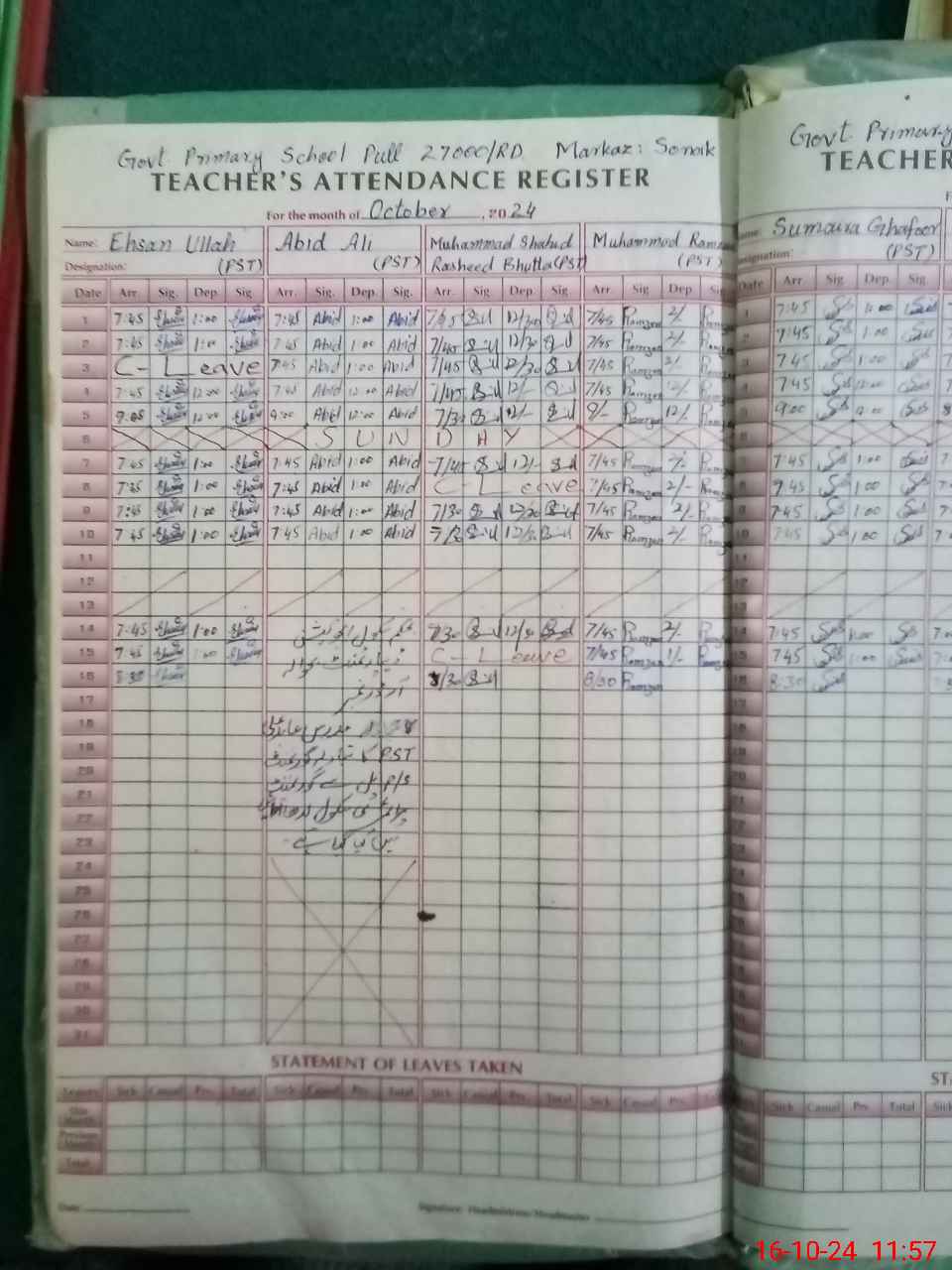 | Name: Sh**** Ra**** Designation: (School Headmaster's/Headmistress's) PST Phone/Cell Number: 03**** |