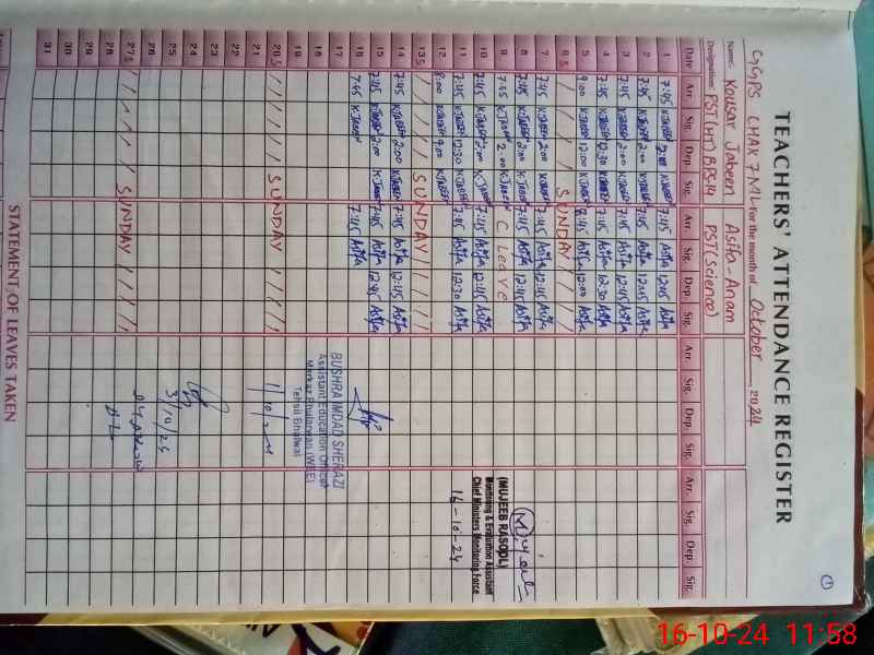 | Name: As**** An**** Designation: (School Headmaster's/Headmistress's) PST Phone/Cell Number: 03**** |