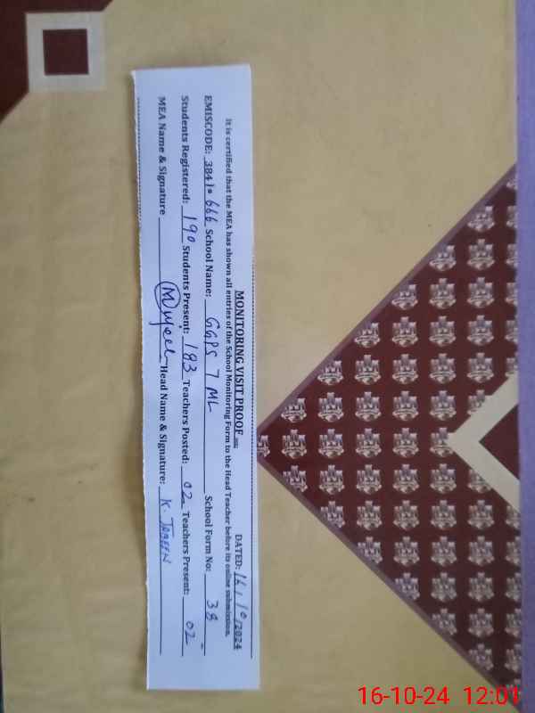 | EMIS Code: 38410666 | Name of School: GGPS CHAK NO.7 ML | |||