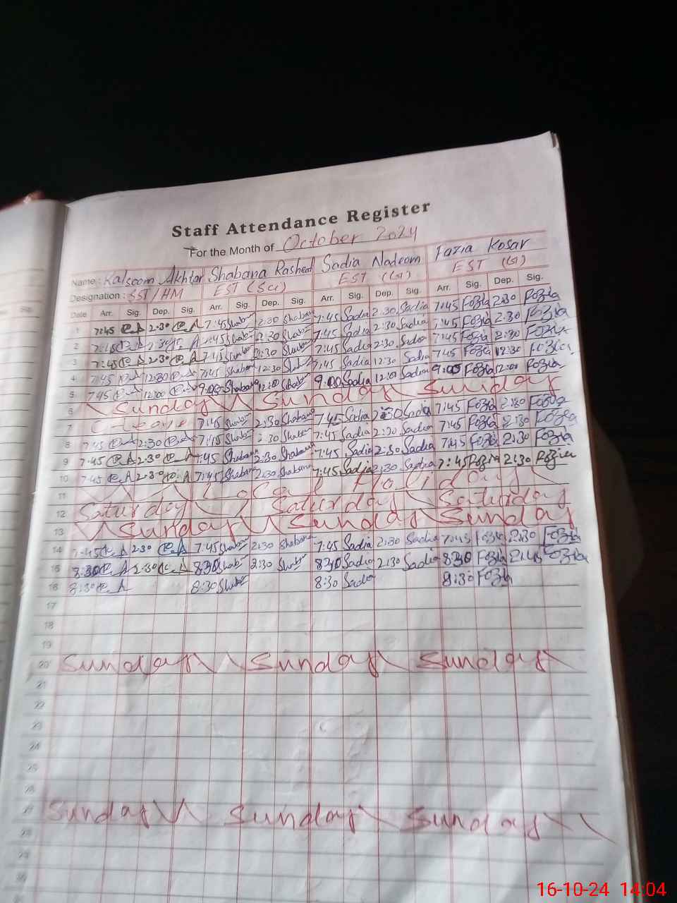 | Leave | Duty | Absent | Maternity | Medical | Ex- Pak |