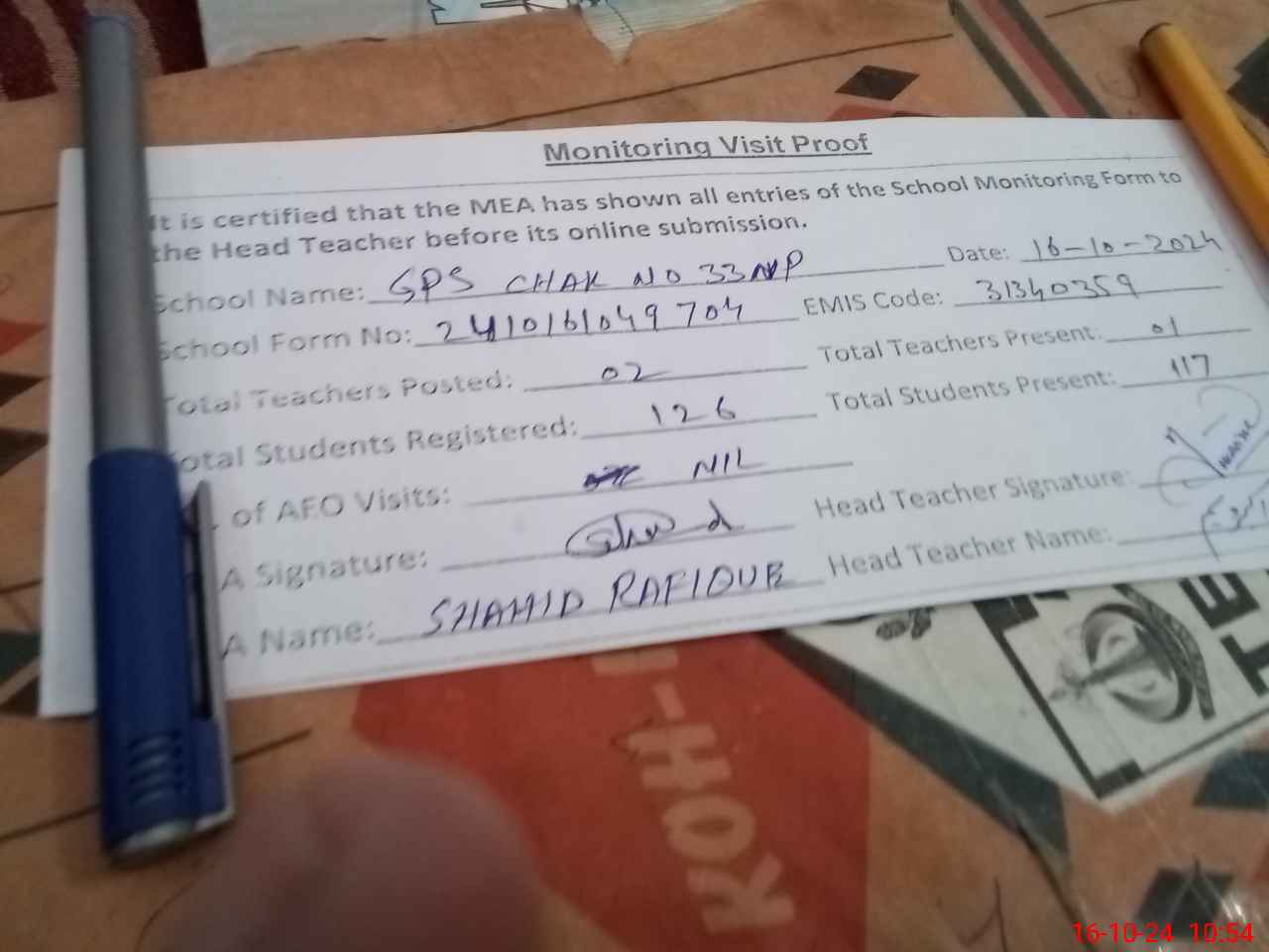 | EMIS Code: 31340359 | Name of School: GPS CHAK NO 33 NP | |||