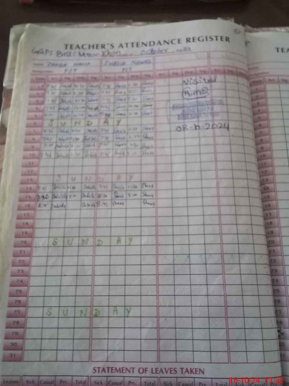 | Leave | Duty | Absent | Maternity | Medical | Ex- Pak |