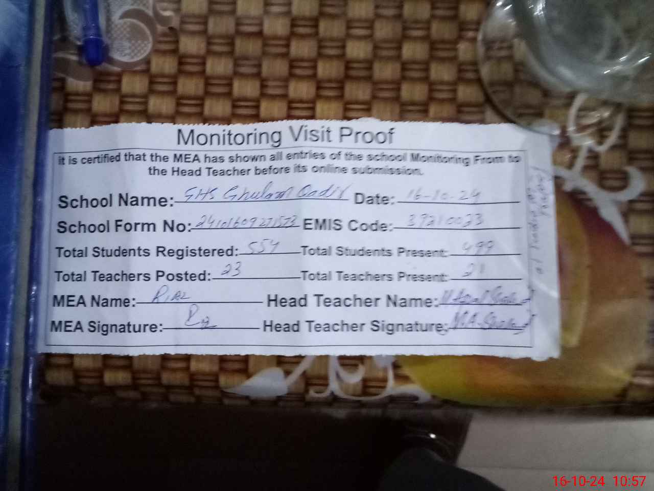 | EMIS Code: 39210023 | Name of School: GHS GHULAM QADIR | |||
