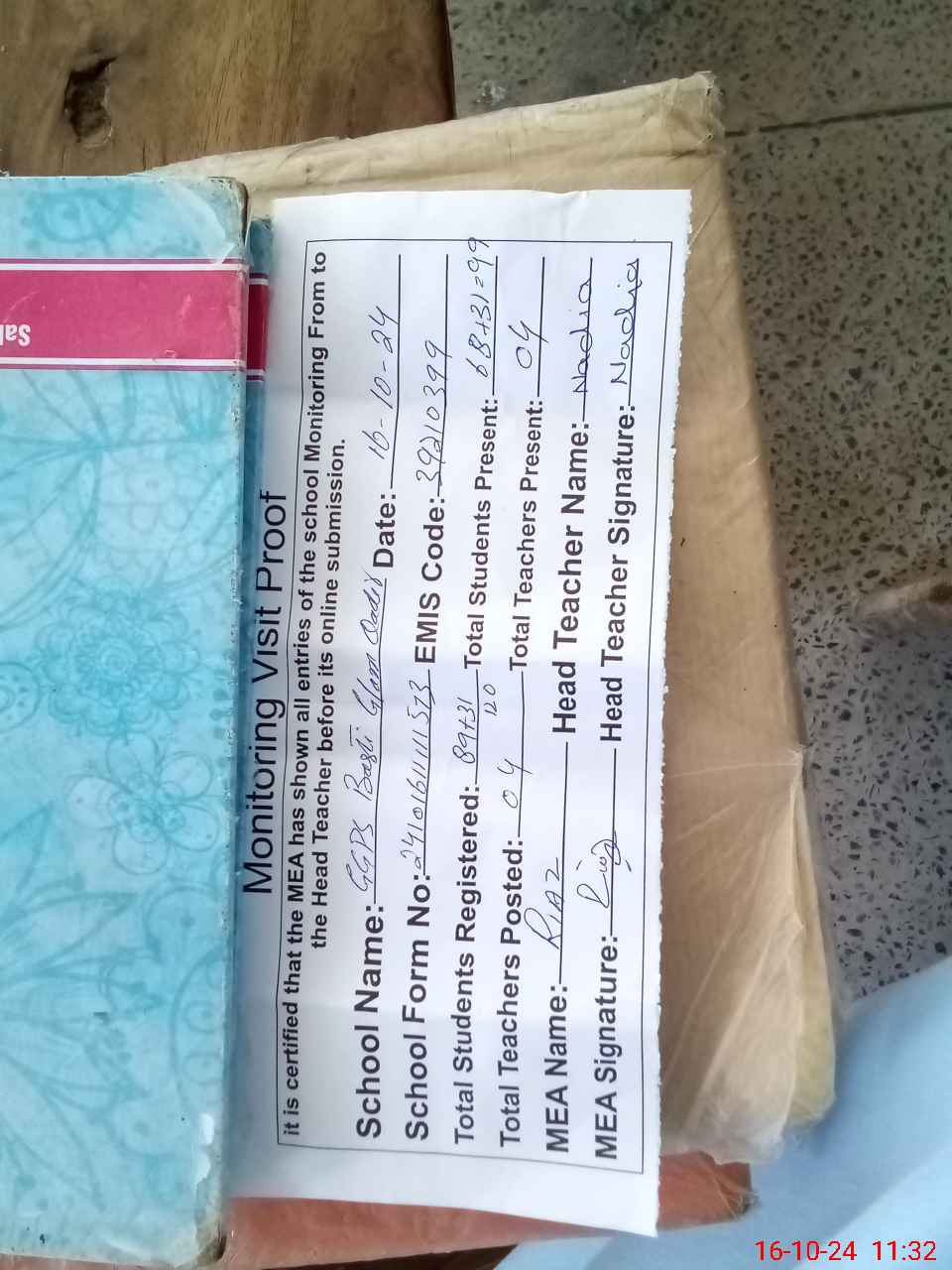| EMIS Code: 39210399 | Name of School: GGPS BASTI GHULAM QADIR | |||