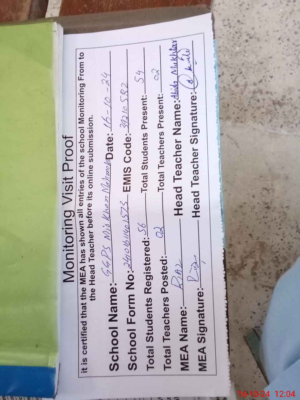 | EMIS Code: 39210582 | Name of School: GGPS MIR KHAN MAHMOONKA | |||