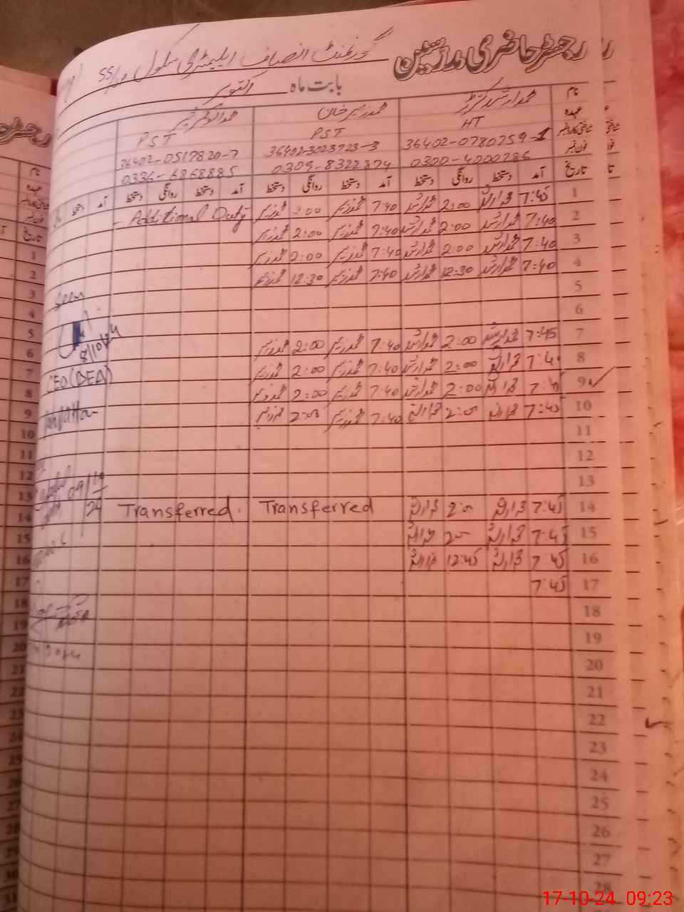 | Name: Mu**** Ar**** Designation: (School Headmaster's/Headmistress's) PST Phone/Cell Number: 03**** |