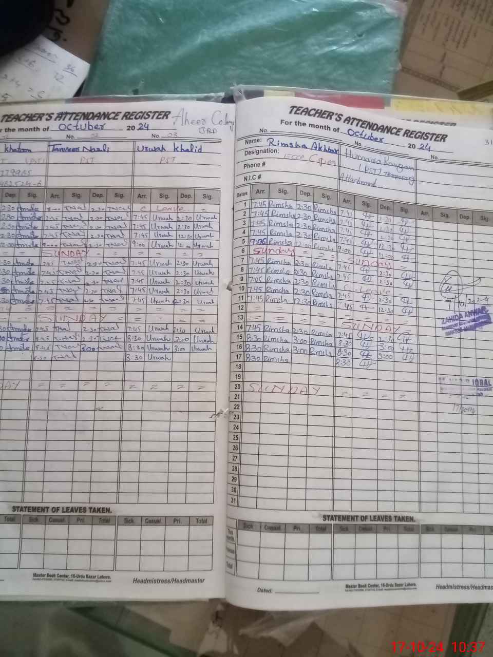 | CNIC | Full Name | Designation | R/C | Absence During Last Calender Month |