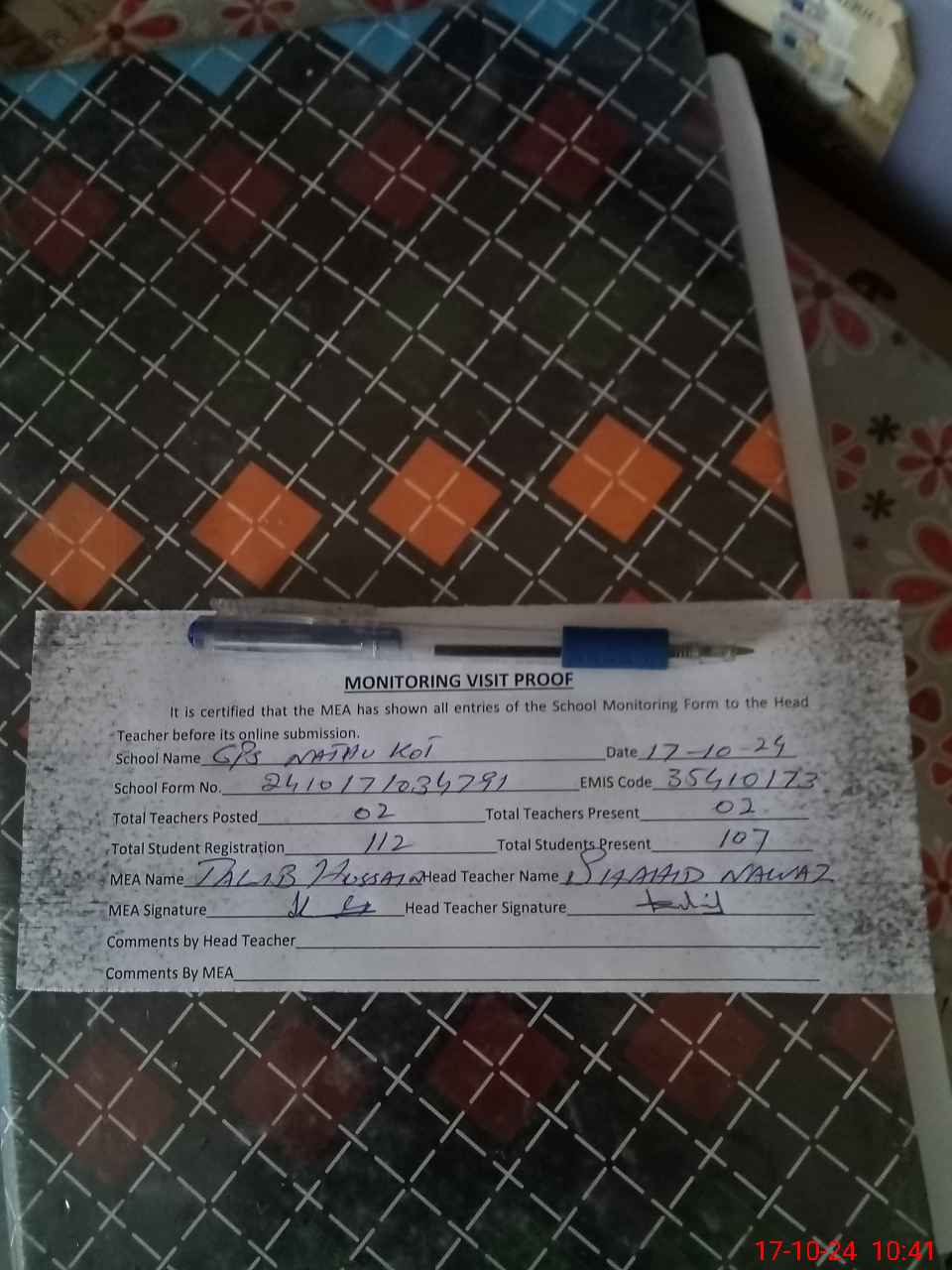 | EMIS Code: 35410173 | Name of School: GPS NATHU KOT | |||