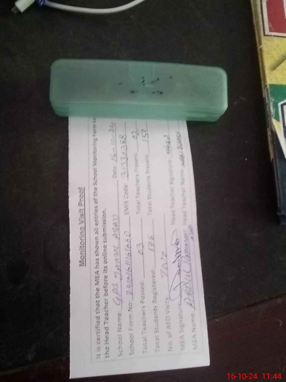 | Attendance Register | Head Teacher | MEA with School | Visit Proof |