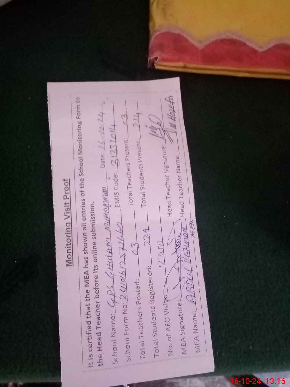 | EMIS Code: 31331014 | Name of School: GPS GHULAM MUHAMMAD KOMBOO | |||