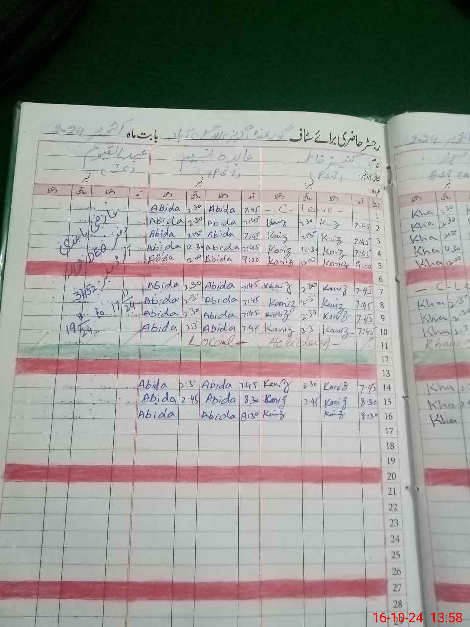 | Leave | Duty | Absent | Maternity | Medical | Ex- Pak |
