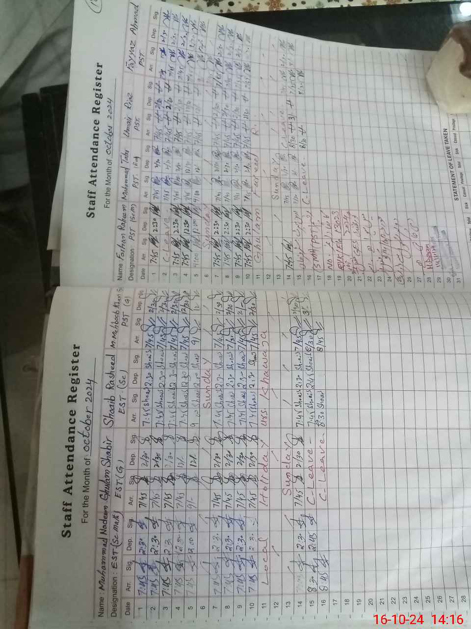 | Leave | Duty | Absent | Maternity | Medical | Ex- Pak |