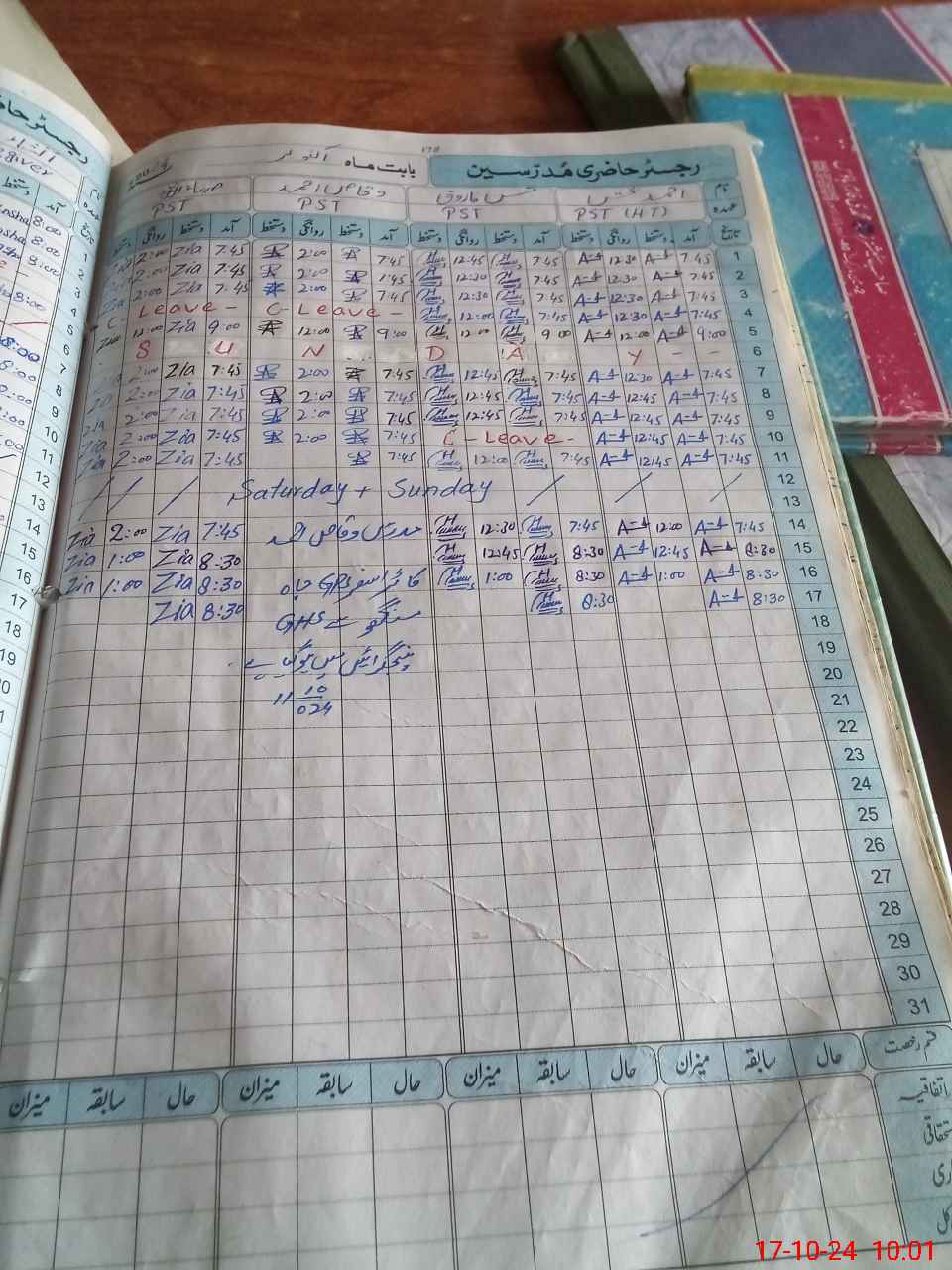 | Leave | Duty | Absent | Maternity | Medical | Ex- Pak |