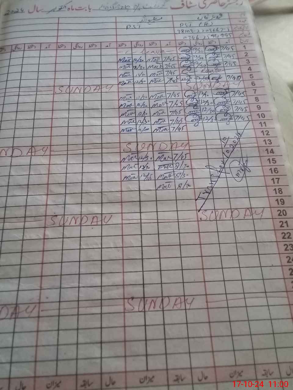 | CNIC | Full Name | Designation | R/C | Absence during last cal. month |