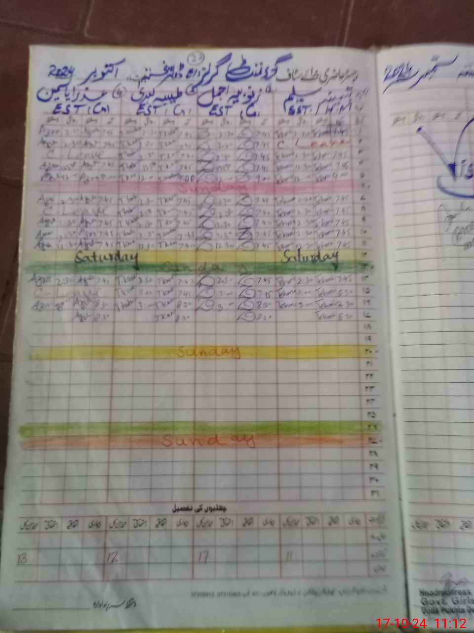 | Leave | Duty | Absent | Maternity | Medical | Ex- Pak |
