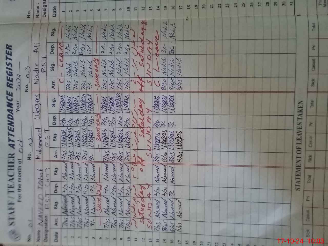 | Name: NA**** IQ**** Designation: (School Headmaster's/Headmistress's) PST/PTC/JV Phone/Cell Number: 03**** |