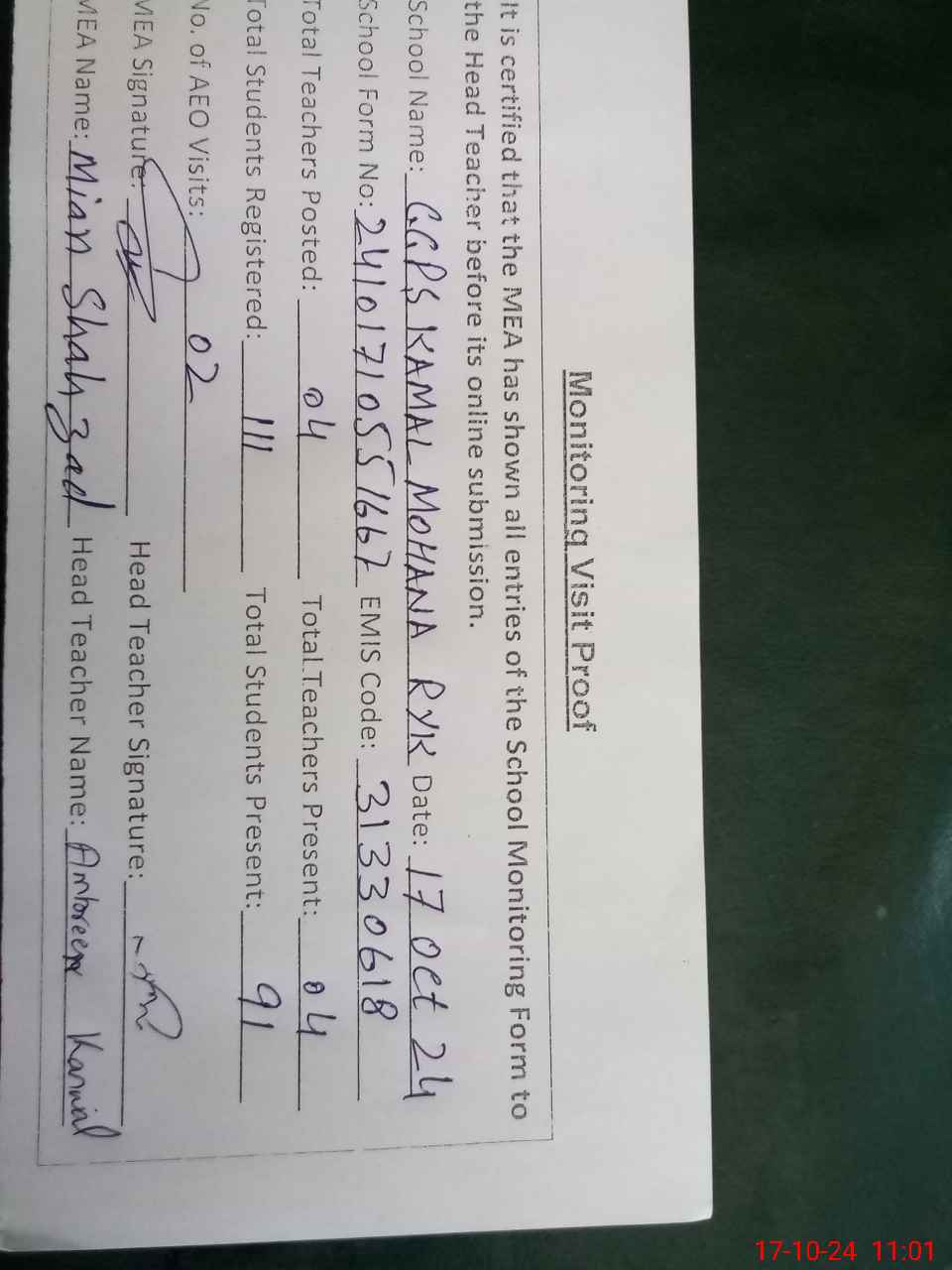 | EMIS Code: 31330618 | Name of School: GGPS KAMAL MOHANA RYK | |||
