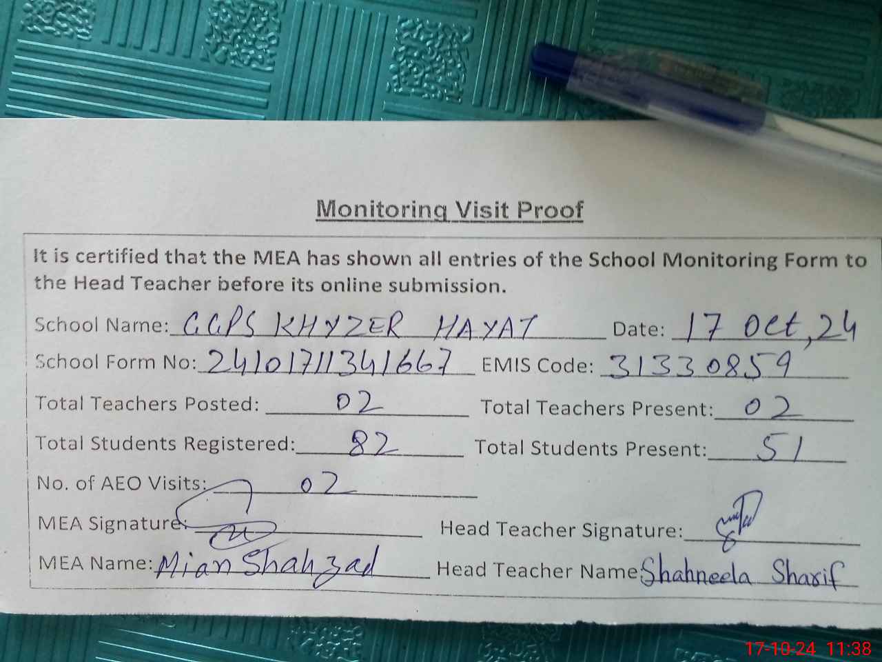 | EMIS Code: 31330859 | Name of School: GGPS KHYZER HAYAT | |||