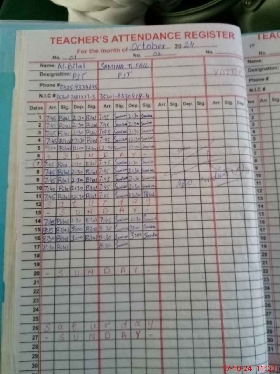 | Name: MU**** Bi**** Designation: (School Headmaster's/Headmistress's) PST Phone/Cell Number: 03**** |