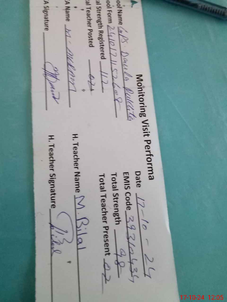 | EMIS Code: 39310434 | Name of School: GPS DAULA PUKHTA | |||