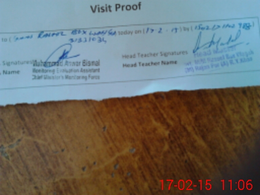 | Name: MU**** IB**** CH**** Designation: (School Headmaster's/Headmistress's) PST/PTC/JV Phone/Cell Number: 03**** |