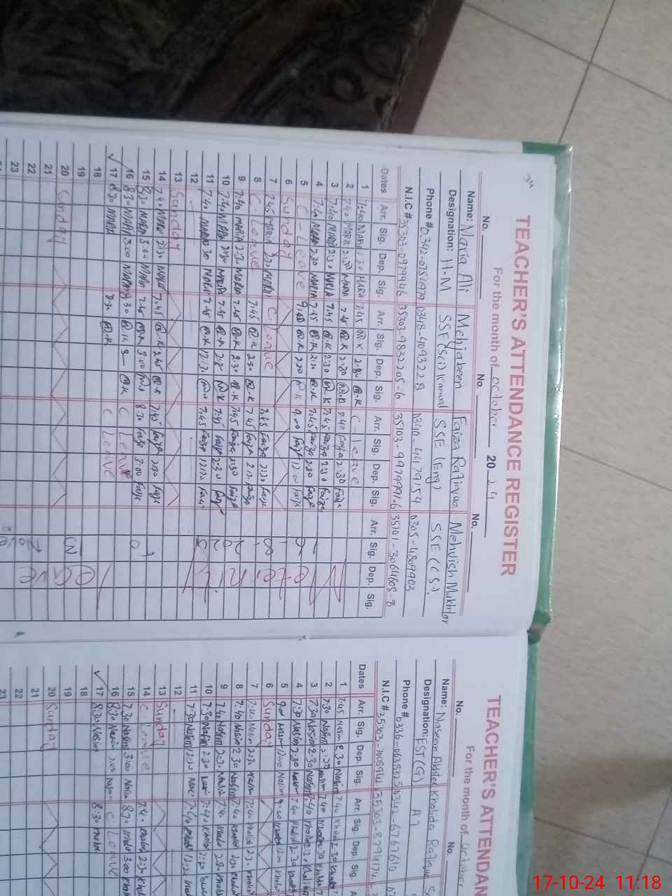 | CNIC | Full Name | Designation | R/C | Absence during last cal. month |
