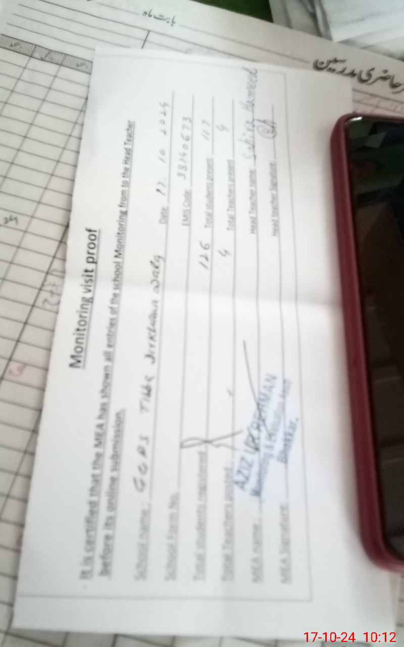| Attendance Register | Head Teacher | MEA with School | Visit Proof |