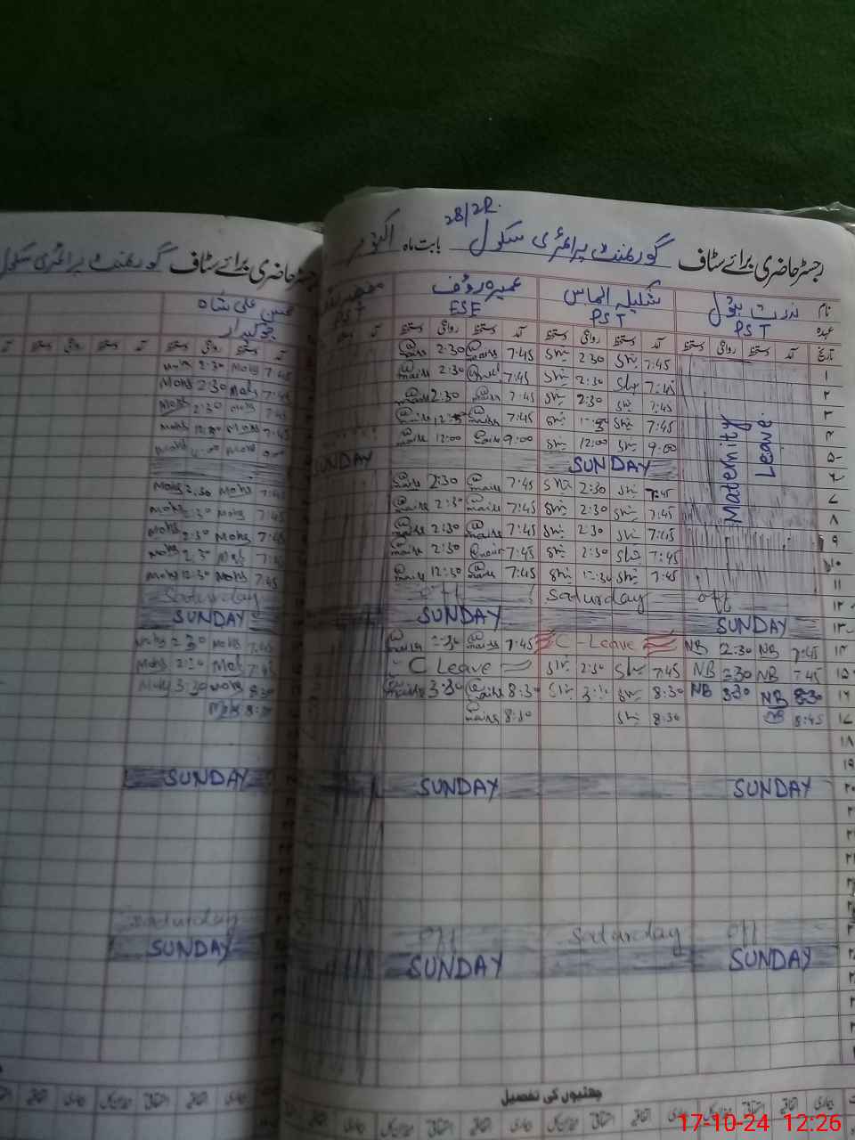 | Leave | Duty | Absent | Maternity | Medical | Ex- Pak |
