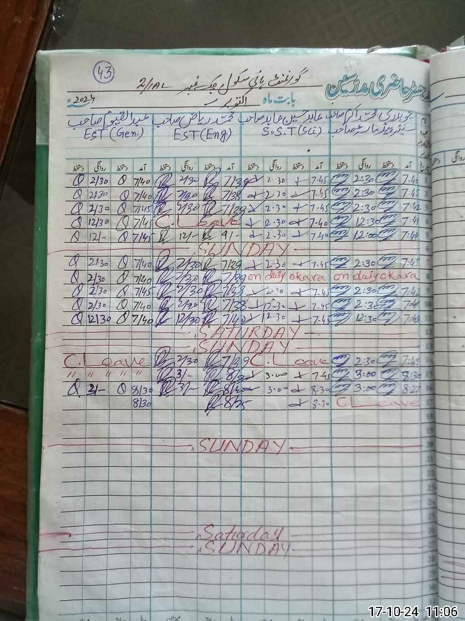 | Leave | Duty | Absent | Maternity | Medical | Ex- Pak |