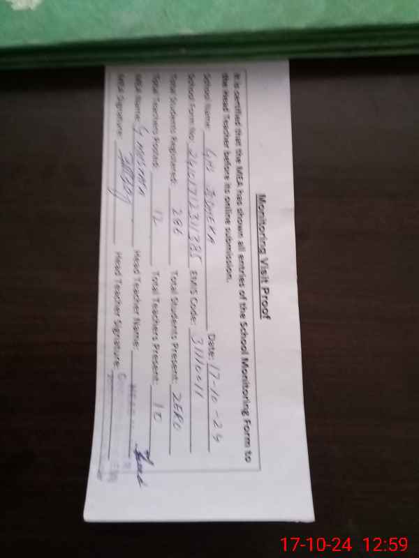 | Attendance Register | Head Teacher | MEA with School | Visit Proof |