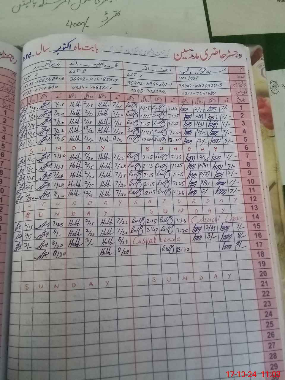 | Name: SY**** SH**** ME**** Designation: (School Headmaster's/Headmistress's) S.S.T (GENERAL) Phone/Cell Number: 03**** |