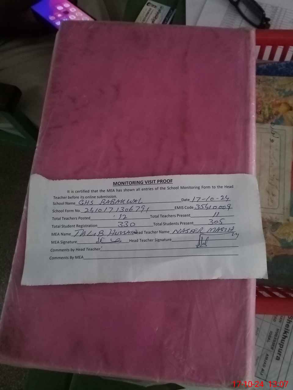 | EMIS Code: 35410009 | Name of School: GHS BABAKWAL | |||