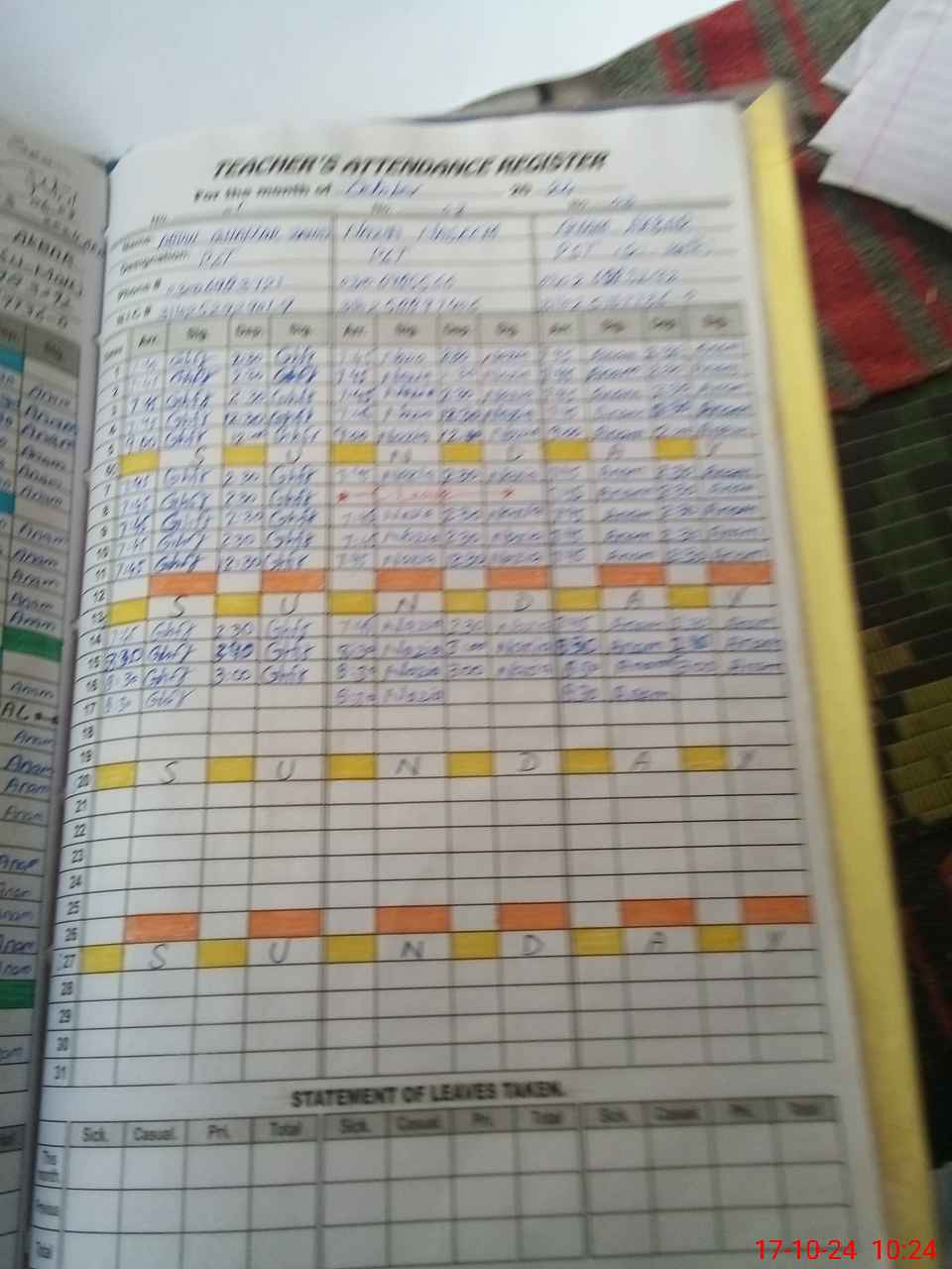 | Leave | Duty | Absent | Maternity | Medical | Ex- Pak |