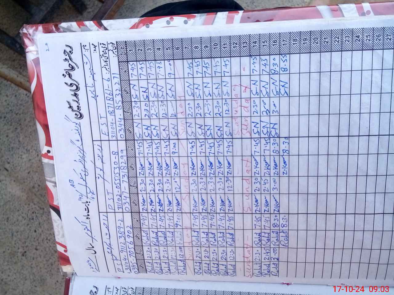 | CNIC | Full Name | Designation | R/C | Absence During Last Calender Month |