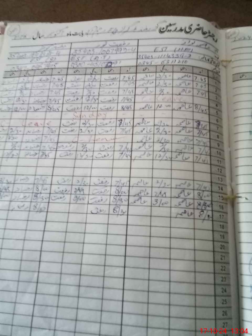 | 33**** | Sh**** Ka**** | PST | Regular | 0 | 0 | 0 | 0 | 0 | 0 | 0 | 0 | 0 | Casual |