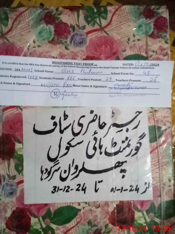 | EMIS Code: 38410001 | Name of School: GHS PHULARWAN | |||