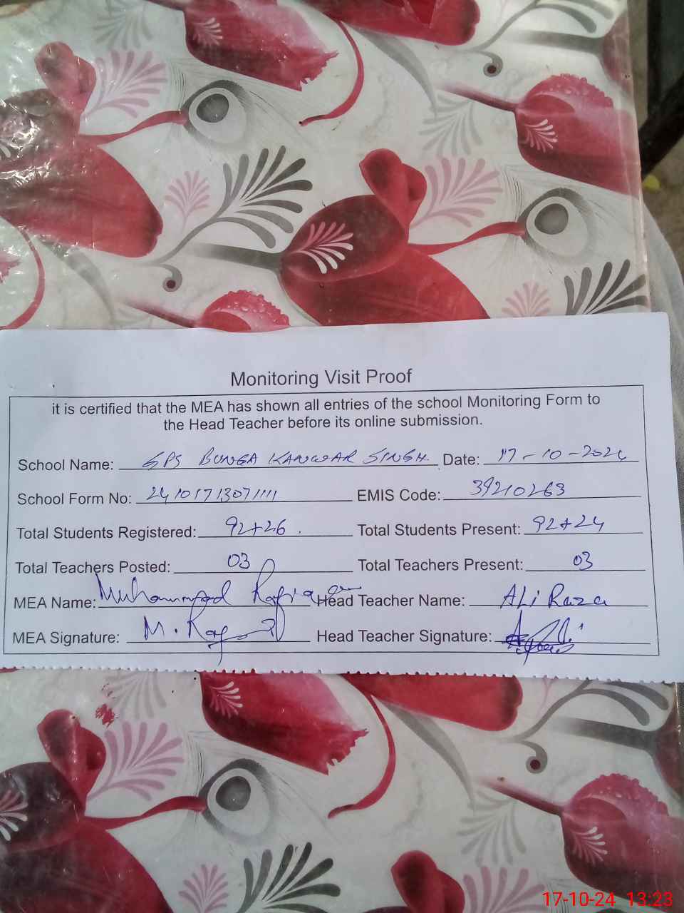 | EMIS Code: 39210263 | Name of School: GPS BUNGA KANWAR SINGH | |||