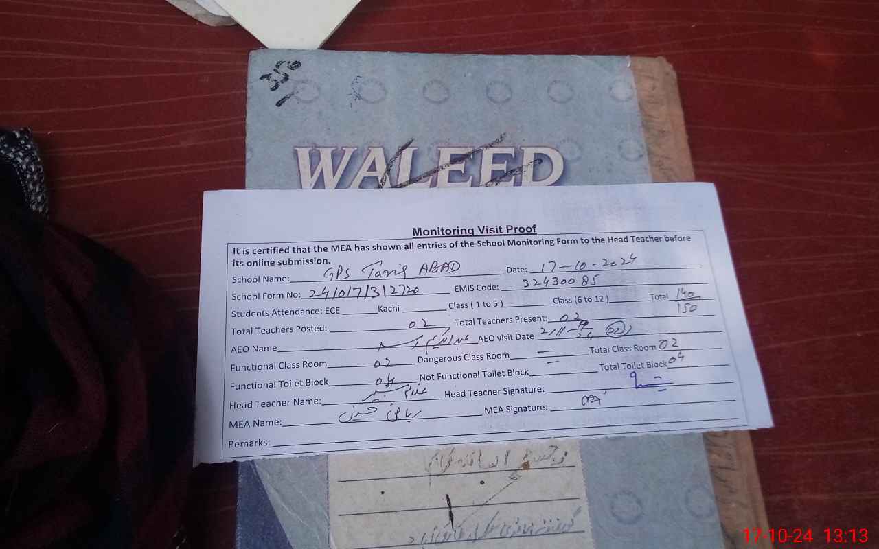 | EMIS Code: 32430085 | Name of School: GPS TARIQ ABAD | |||