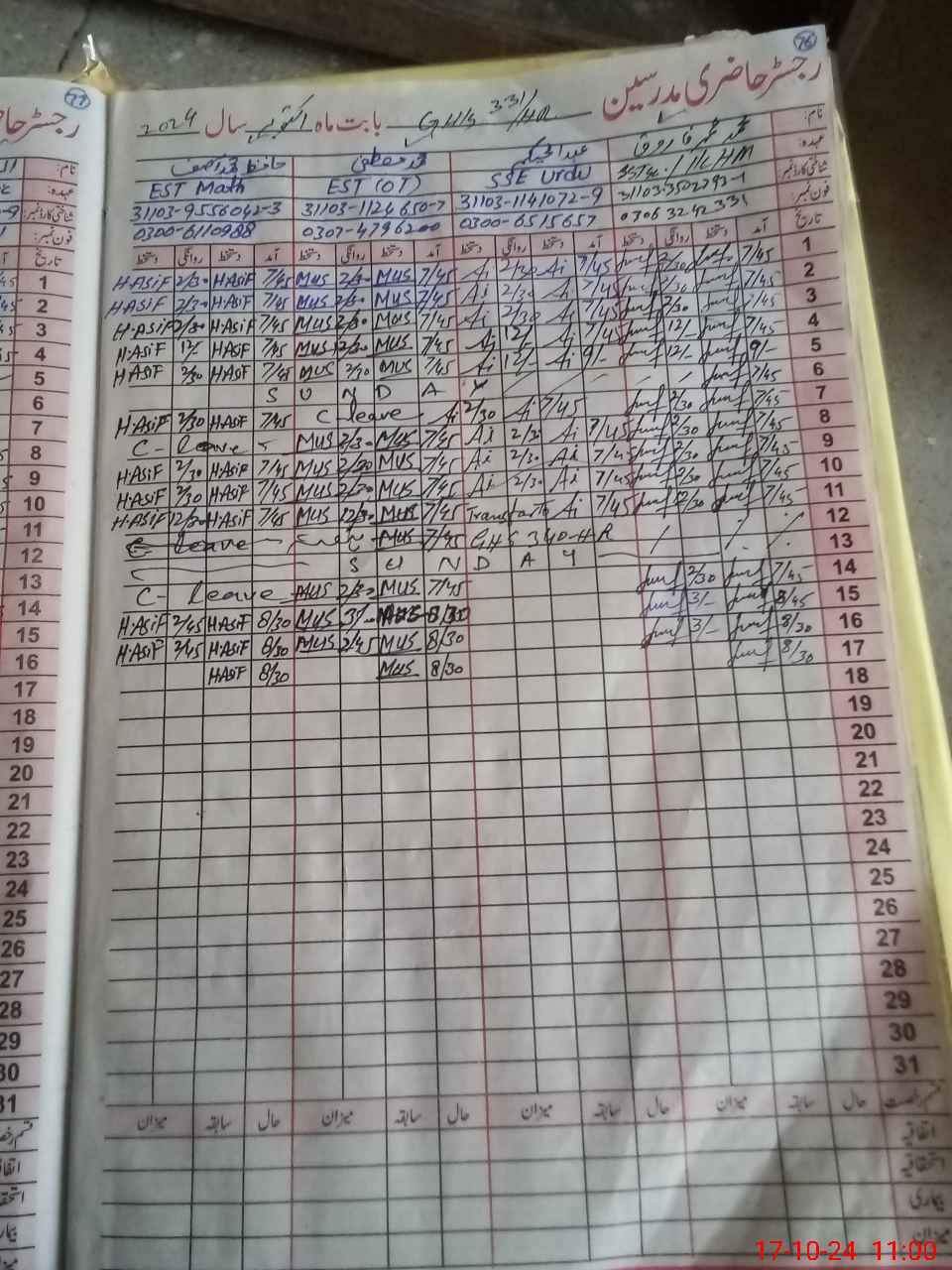 | 31**** | Mu**** Um**** Fa**** | Regular | 0 | 0 | 0 | 0 | 0 | 0 | 0 | 0 | 0 | Absent (Un-Authorized) | |