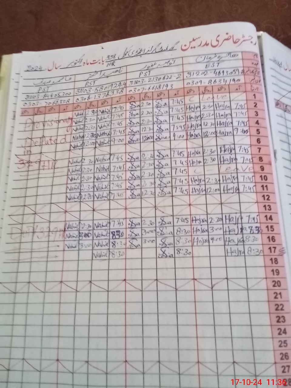 | 31**** | Iq**** Mu**** | PST | Regular | 0 | 0 | 30 | 0 | 0 | 0 | 0 | 0 | 0 | Absent (Un-Authorized) |